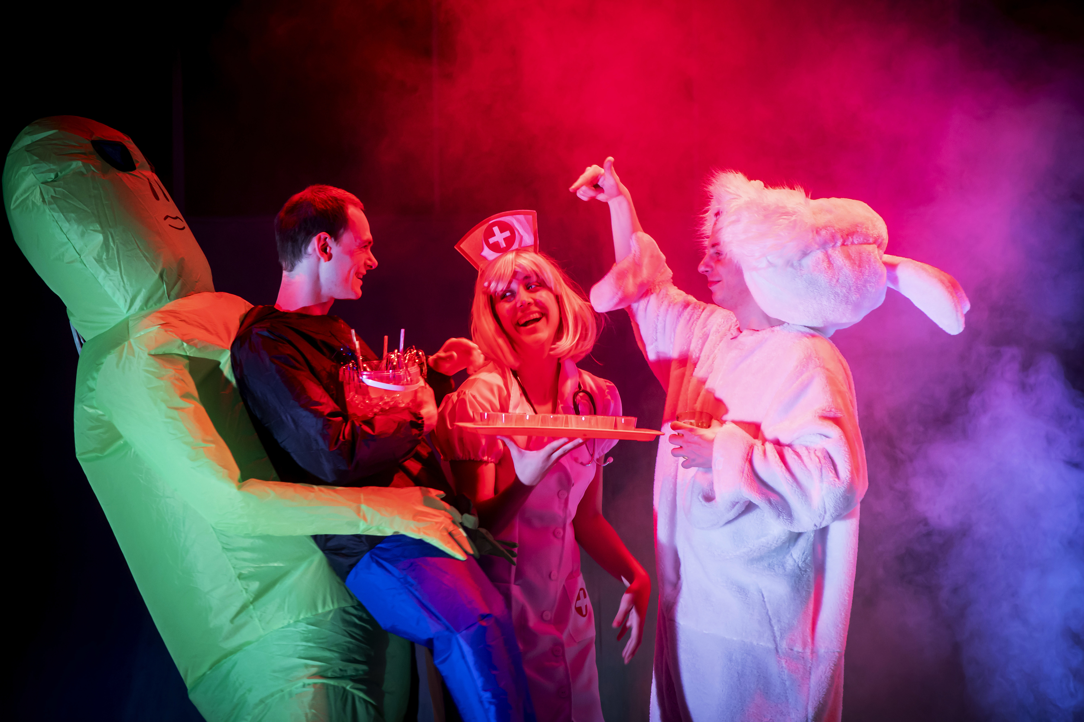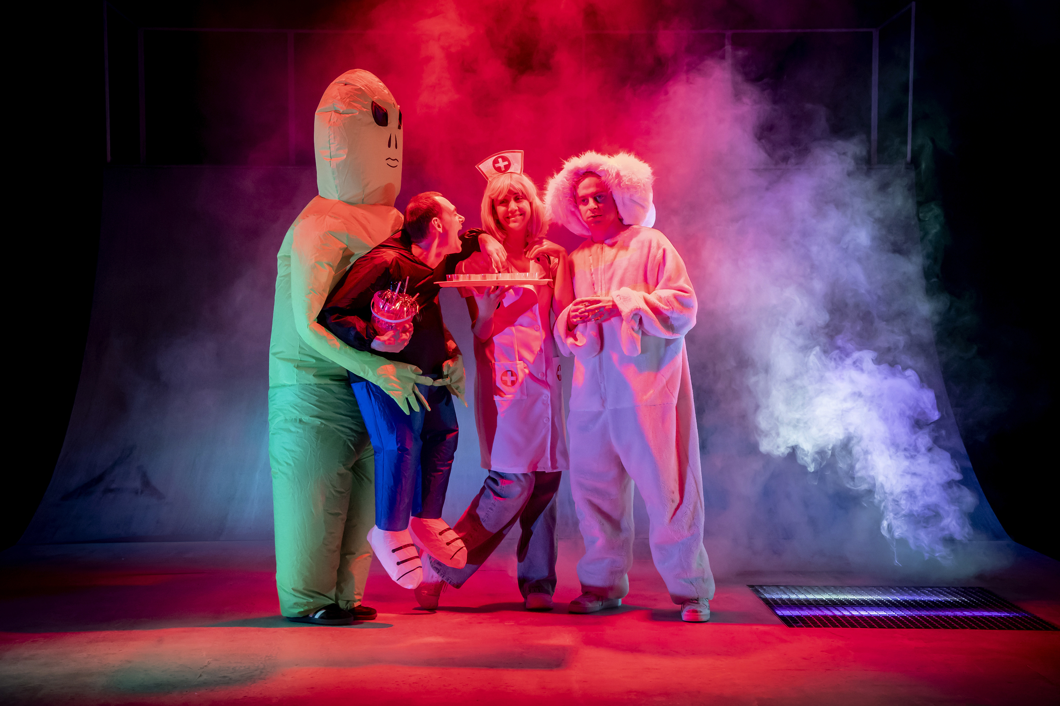 Forestillingen er rå og hurtig, en horrorkomedie, men også en fortælling om venskab som overlevelse, om skam og rygter, og om hvor meget det betyder, at nogen siger “Jeg er ligeglad.”