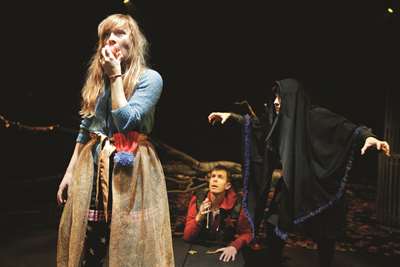 Brødrene Grimms eventyrfigurermøder hinansen på kryds og tværs og det er der kommet en særdeles morsom og dejlig uhyggelig forestilling ud af.